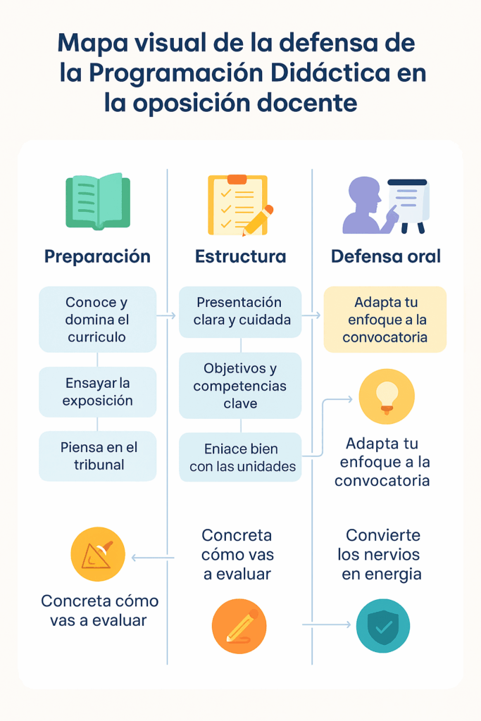 La defensa oral no es una prueba decorativa. Es uno de los apartados que más diferencian unas oposiciones de otras, porque evalúa competencias docentes reales.